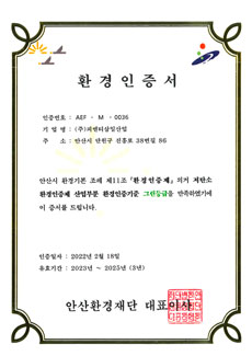| 2020-11-15 | 표창장 | 경기도지사 이재명 | 모범 기업경영 활동 지역경제 발전공여 |