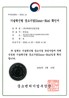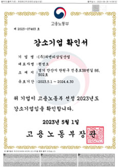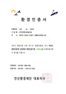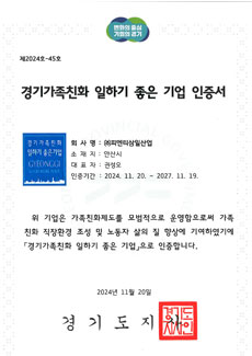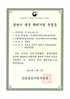 | 2020-11-15 | 표창장 | 경기도지사 이재명 | 모범 기업경영 활동 지역경제 발전공여 |