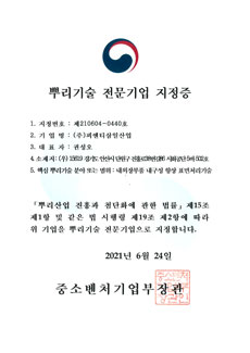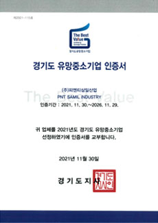 | 2019-10-30 | 표창장 | 경기지방중소벤처기업청장 | 중소기업 융합교류활동(피엔티삼일산업) |